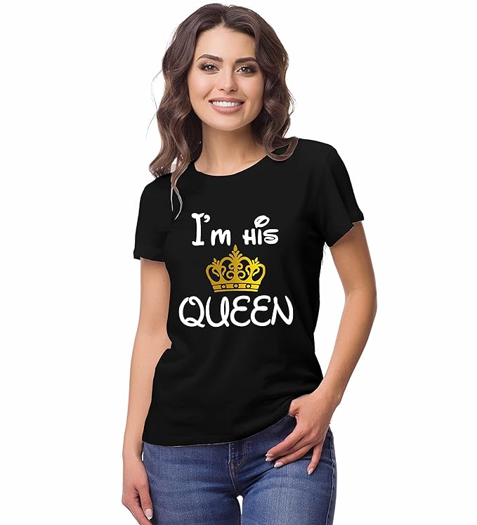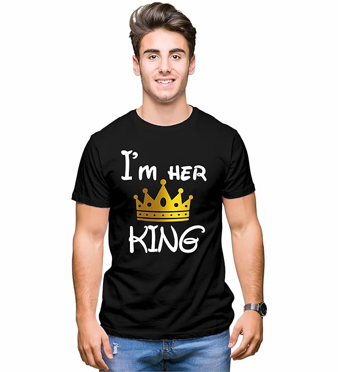 Hangout Hub Hangout-Hub850$P Couple T Shirts for Couples | Printed I Am Her King His Queen T-Shirt for Men Women Couples (Set of 2 | Regulat Fit | Cotton)